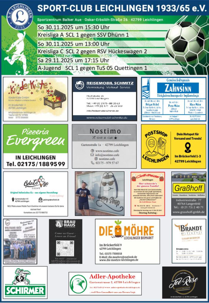 Fußball ist ein Teamsport – auf dem Platz und neben dem Platz. Der SC Leichlingen will für jede Mannschaft im Spielbetrieb ein mindestens zweiköpfiges Trainer- und Betreuerteam stellen. In regelmäßigen Trainertreffen tauschen wir uns über aktuelle Entwicklungen im Sport und Vereinsleben aus.